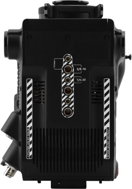 • Monitorski izhodi: lastna zgornja vrata za predogled in daljinsko upravljanje. 3x 12G-SDI s podporo za načine 6G-SDI, 3G-SDI in 1,5G-SDI. 1x 3G-SDI s podporo za načine 3G-SDI in 1,5G-SDI (EVF). 12G-SDI: do 4096 x 2160 4:2:2 60p, 6G-SDI: do 4096 x 2160 4:2:2 30p, 25p, 24p, 3G-SDI: do 2048 x 1080 4:2:2 60p, 1,5G-SDI: do 2048 x 1080 4:2:2 30p, 25p, 24p. Časovna koda SMPTE, metapodatki HANC, 24-bitni 48 kHz zvok.