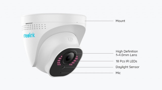 Varnostna kamera Reolink z ločljivostjo (2560 × 1920 (5,0 milijona slikovnih pik) pri 30 sličicah na sekundo), z vidnim kotom 48-94° in 18 zmogljivimi infrardečimi diodami LED za nočni način z dometom do 30 m. Poleg tega napredna tehnologija za zmanjševanje šuma zagotavlja jasne in ostre slike tudi pri snemanju pri šibki svetlobi. Certifikat IP66 zagotavlja odpornost na vremenske vplive - kamere lahko namestite praktično kamor koli! Kamere RC-522 so namenjene varnostnim sistemom ReolinkNVR in jih je mogoče upravljati ločeno.