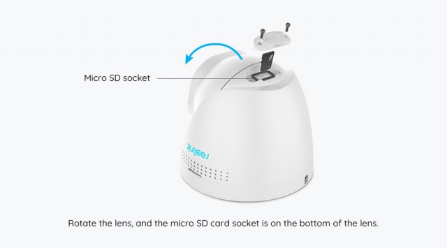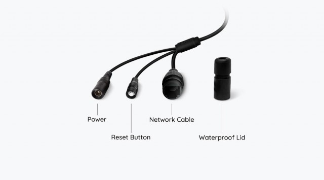 - Priključek RJ45 10M/100Mb/s - napajanje - reža za kartico micro SD - vgrajeni mikrofon - gumb za ponastavitev