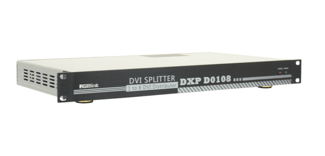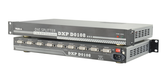 RGBlink DXP D0108 je 1-v-8 video distribucijski ojačevalnik, zasnovan za profesionalne AV namestitve, učilnice, kontrolne sobe in oddajna okolja. Ta kompaktna 1RU enota sprejema en DVI vhod (združljiv z HDMI) in ga distribuira na osem DVI izhodov, pri čemer samodejno prepozna vhodne formate za nemoteno delovanje.