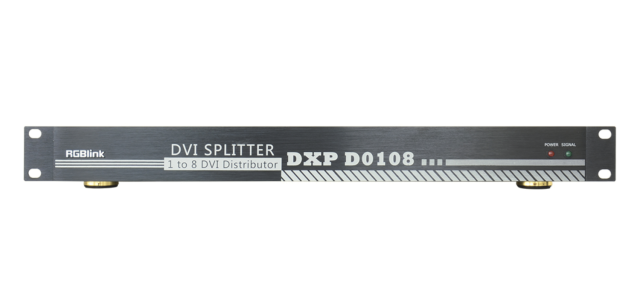 RGBlink DXP D0108 je visoko zmogljiv 1-v-8 DVI/HDMI distribucijski ojačevalnik v kompaktni obliki 1RU. Podpira široko paleto ločljivosti VESA in SMPTE do 2560×816@60 Hz in je skladen s standardom HDCP. Zanesljivo distribuira en video vir na več zaslonov za profesionalne AV, oddajne in predstavitvene aplikacije.