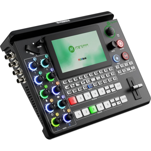 Za pretakanje in snemanje mini-edge SDI podpira USB-C UVC izhod za neposredno uporabo kot spletna kamera s platformami, kot so Zoom, Teams, OBS in vMix, ter pretakanje IP in NDI|HX3. Večplatformno pretakanje do štirih destinacij je podprto nativno, medtem ko RGBlink TAO Cloud omogoča do 32 hkratnih pretokov. Snemanje USB-C 3.0 omogoča neposredno snemanje na zunanje diske do 2 TB, pri čemer je podprto hkratno pretakanje in snemanje. Profesionalne avdio funkcije vključujejo XLR in 1/4" mikrofon/linijske vhode s fantomskim napajanjem, vgrajen HDMI avdio, avdio zamik, preklapljanje AFV in polno avdio mešalno konzolo.