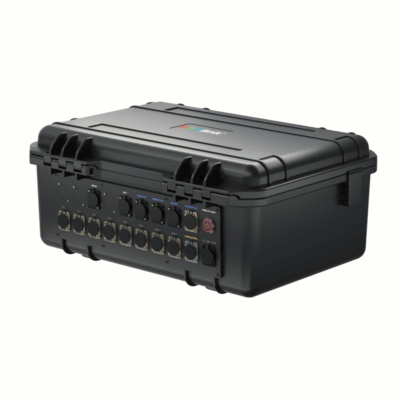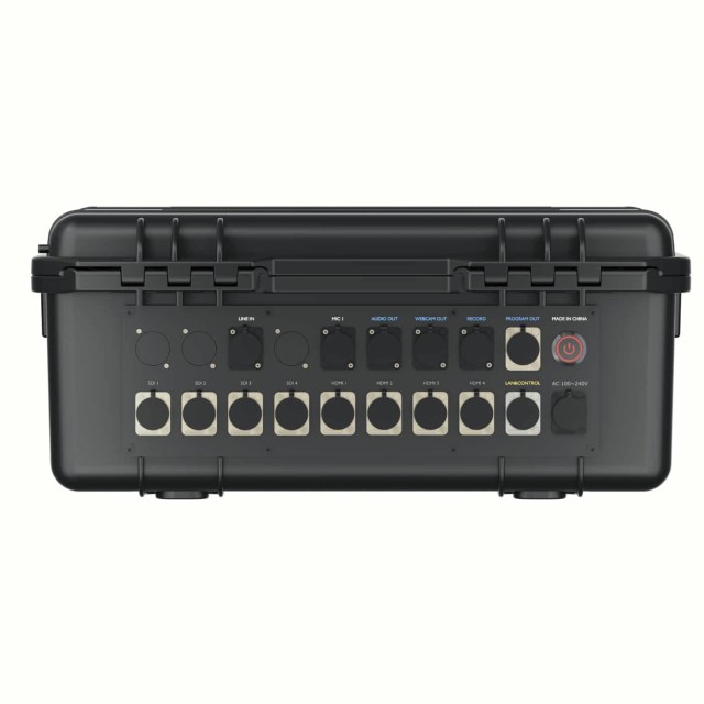 RGBlink mini-ISO 4S je vsestranski vse-v-enem stikalnik za pretakanje, zasnovan za profesionalno produkcijo v živo, hibridno pretakanje in dogodke. Nahaja se v trpežnem ABS kovčku z vgrajenim 14-palčnim HD IPS zaslonom in hidravlično podporo, združuje prenosljivost s stabilnostjo in dolgotrajno zanesljivostjo. Preklopnik ponuja skupno 10 video vhodov: 4 × 4K HDMI 2.0, 4 × SDI, plus NDI in USB UVC, skupaj z dvojnimi HDMI 1.3 izhodi za programsko in večpogledno spremljanje. USB izhodi omogočajo uporabo spletne kamere in snemanje MP4 do 16 Mbps, podpirajo pa formate shranjevanja FAT32 in exFAT.
