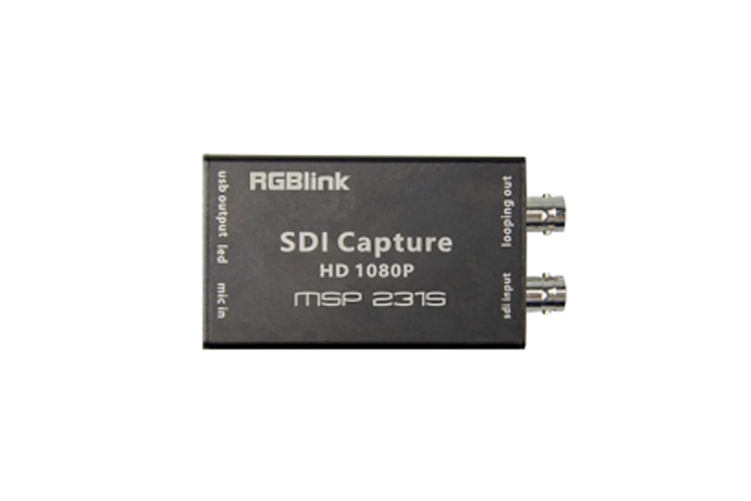 RGBlink MSP 231S 1080P SDI Capture je prenosna, visoko zmogljiva naprava za zajem videa, ki pretvarja SDI signale v USB izhod za profesionalno pretakanje in snemanje videa. Zasnovana je v skladu s standardi UVC/UAC, zajema en SDI vhod (z izhodom v zanki) in zagotavlja ločljivost do 1920×1080 pri 60 fps. Vgrajen 3,5-mm MIC vhod omogoča sinhrono zajemanje zvoka in zagotavlja profesionalno kakovost snemanja.
