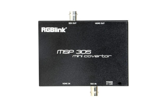 RGBlink MSP 305 je kompakten, visoko zmogljiv dvosmerni pretvornik, zasnovan za profesionalne video delovne tokove. Omogoča prikazovanje HDMI signalov na SDI monitorjih in obratno, podpira visoke bitne hitrosti do 2,970 Gbit/s, da ohrani integriteto signala brez izgube. Naprava podpira HDMI 1.3 vhod/izhod in 3G SDI vhod/izhod, z avtomatskim zaznavanjem formatov SD, HD in 3G za brezhibno delovanje.