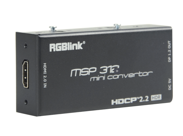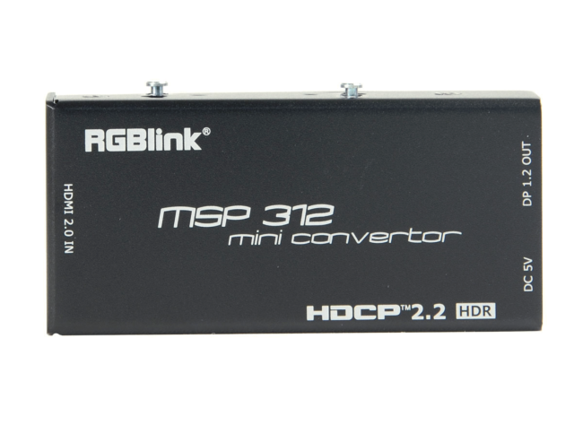 RGBlink MSP 312 je kompakten profesionalni pretvornik formata HDMI v DisplayPort, zasnovan za podporo delovnih tokov z visoko ločljivostjo 4K. Z vhodom HDMI 2.0, izhodom DisplayPort 1.2, združljivostjo HDR in skladnostjo HDCP 2.2 zagotavlja zanesljivo pretvorbo signala za oddajanje, AV in profesionalne zaslonske aplikacije.