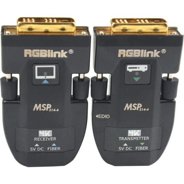 RGBlink MSP 314-4 je vsestranski sistem za podaljšanje DVI-over-fiber, ki omogoča podaljšanje visokokakovostnih video signalov na dolge razdalje z minimalnimi motnjami. Kompaktne oddajne in sprejemne enote imajo vgrajene LC-konektorje za optična vlakna in podpirajo ločljivosti do WUXGA (1920×1200@60Hz) in HDMI 1.4 (4Kx2K@30Hz). Z enomodalnim optičnim vlaknom je mogoče video prenašati do 2000 metrov, medtem ko večmodalno optično vlakno podpira razdalje do 300 metrov.
