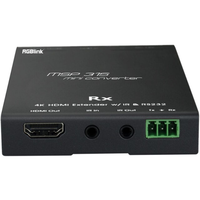 Komplet RGBlink MSP 315-4 HDMI 1.4 do HDBaseT Extender Set zagotavlja zanesljiv in učinkovit način za podaljšanje HDMI video, avdio in kontrolnih signalov na dolge razdalje z enim samim kablom Cat 5e ali Cat 6a. Sistem, ki ga sestavljata oddajnik in sprejemnik, podpira prenos videa 4K30 do 131 čevljev in videa 1080p60 do 230 čevljev, kar ga naredi primernega za profesionalna AV okolja.