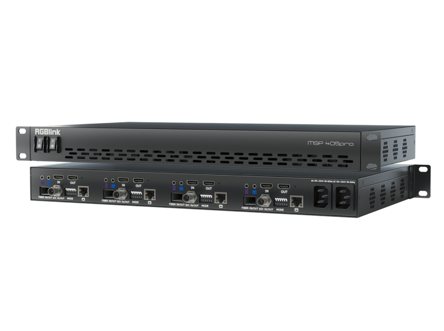 RGBlink MSP 405 Premier je vrhunska različica serije MSP 405, zasnovana za fiksne inštalacije in profesionalne infrastrukture za oddajanje, ki zahtevajo stabilnost, varnost in visoko zmogljivost. Podpira popolno pretvorbo med HDMI 2.0, SDI (vključno z SD, HD, 3G, 6G in 12G-SDI) in optičnimi signali, z avtomatskim prilagajanjem formata, da se zagotovi brezhibna združljivost z različnimi video viri in zasloni. Vsi vmesniki podpirajo ultra visoke ločljivosti do 3840×2160 @ 60Hz, hkrati pa ohranjajo združljivost z HD in SD formati.