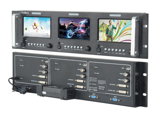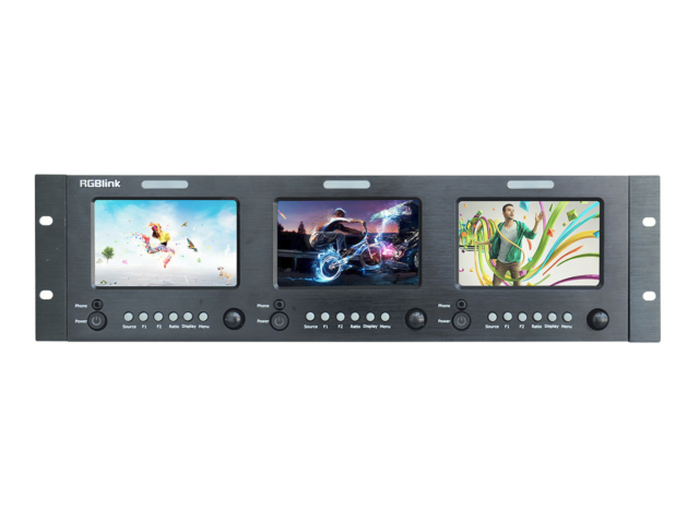 RGBlink RMS 5533S je kompakten monitor za vgradnjo v 3RU stojalo, ki ima tri neodvisne 5-palčne LCD-zaslone s podporo za večformatni video vhod, indikatorje tally in vgrajeno spremljanje zvoka, zaradi česar je idealen za stojala za oddajanje, kontrolne sobe in uporabo v OB-vozilih.