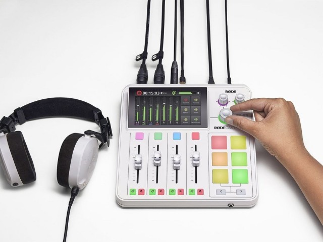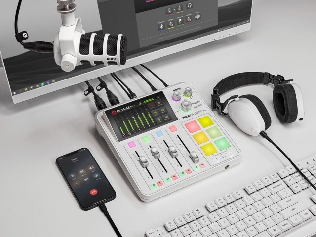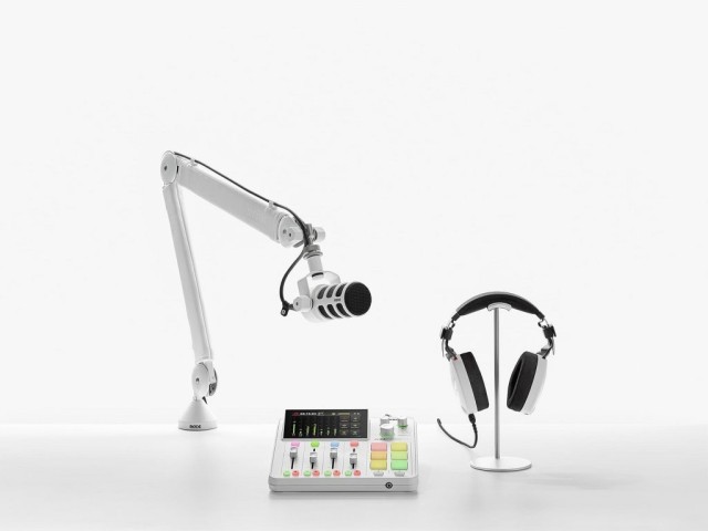 Kompaktna studijska mešanica za podcast in pretakanje, 2 analogna vhoda - mikrofon/linija/orodje, 2x izhod za slušalke, 1x vhod za slušalke, izhod za avdio monitor, 2x USB-C, Wi-Fi, Ethenet, Bluetooth®, sprejemnik za brezžično povezavo RØDE, 4 fizični in 3 virtualni faderji, 5,5" LCD zaslon, procesorji APHEX®, učinki RØDE FX, bela barva