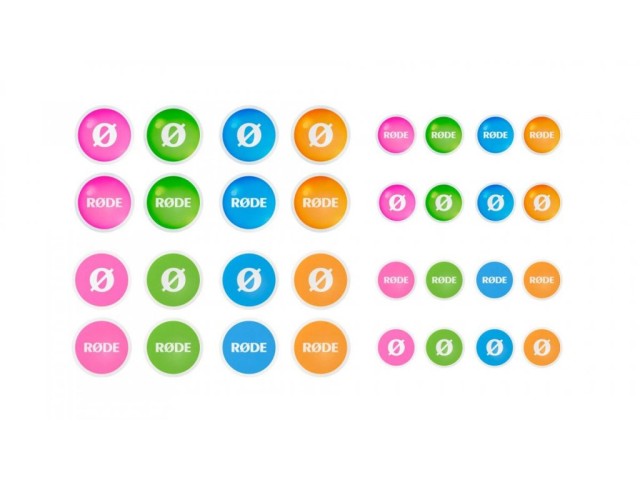 RODE COLORS 2 je sada čtyř barevných pop filtrů, kabelových identifikačních kroužků, nálepek a štítku pro vybrané mikrofony RØDE.