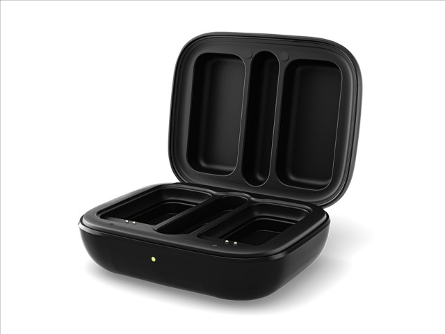 Charge Caseje zaščitni kovček za prenos in sprejemnik. Deluje tudi kot polnilna postaja, ki zagotavlja, da se oddajniki napolnijo med prevozom ali odmori med snemanjem. Napaja se lahko s priloženim kablom USB-C ali z notranjo baterijo, ki lahko dvakrat popolnoma napolni vse komponente kompleta.