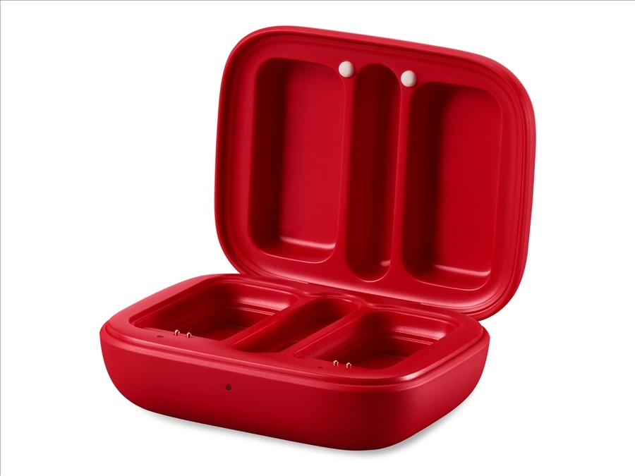 je zaščitni kovček za prenosnike in sprejemnik. Deluje tudi kotpolnilna postaja, ki zagotavlja, da se oddajniki napolnijo med prevozom ali odmori med snemanjem. Napaja se lahko s priloženim kablom USB-C ali znotranjo baterijo, ki lahkodvakrat popolnoma napolnivse komponente kompleta.