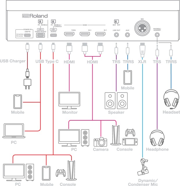 Bridge Cast X vam omogoča, da se osredotočite na ustvarjanje - od spletnih iger do podcastov, vlogov in drugih video vsebin, namesto da bi se ukvarjali s kabli in različnimi specializiranimi dodatki. Integrirana zasnova poenostavlja povezave in zmanjšuje nered s kabli, intuitivni vmesnik pa vam omogoča nemoteno mešanje zvoka in upravljanje vseh funkcij, ki jih potrebujete. Z več vhodi USB-C in HDMI (naenkrat je lahko aktiven samo en vhod HDMI, nemoteno preklapljanje med vhodi HDMI v živo ni podprto) lahko povežete vse svoje naprave in se izognete temu, da bi morali vse ročno znova povezati vsakič, ko želite spremeniti sestavo za načrtovani prenos.