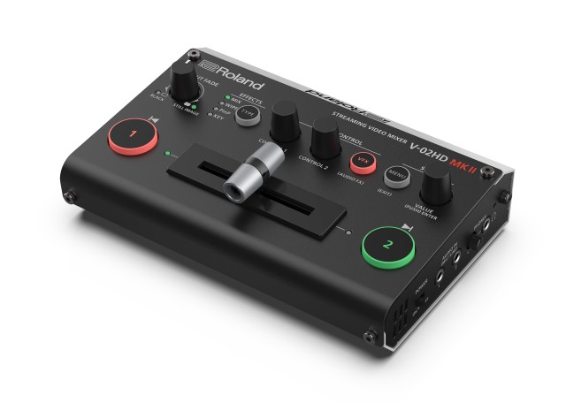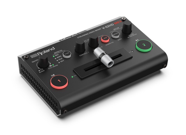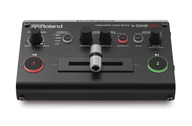 Z miniaturno dvokanalno režijsko in pretočno napravo Roland V-02HD MK II lahko z dvema kamerama z izhodom HDMI preprosto preverite predvajane oddaje v živo in jih predvajate s pomočjo računalnika s priključkom USB-C! Na voljo je tudi možnost dodajanja zvoka v vaše predstave (vgrajena 10-kanalna virtualna konzola, 2x 3,5 mm jack + priključni vhod za napajanje, zvok HDMI ...), uporaba učinkov in prepletanja ali upravljanje z (opcijskimi) pedali BOSS.