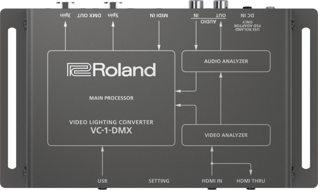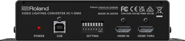VC-1-DMX samodejno ustvarja ukaze za upravljanje vaše osvetlitve DMX na podlagi vhodnih podatkov iz video in avdio virov, zato ni potreben poseben upravljavec osvetlitve. Barva in svetlost se spreminjata glede na trenutno video sliko, luči in zrcalne krogle pa delujejo sinhronizirano s tempom glasbe. In če se želite poglobiti, VC-1-DMX podpira zunanje delovanje MIDI iz strojnih nadzornih površin, elektronskih glasbil in računalniške produkcijske programske opreme.
