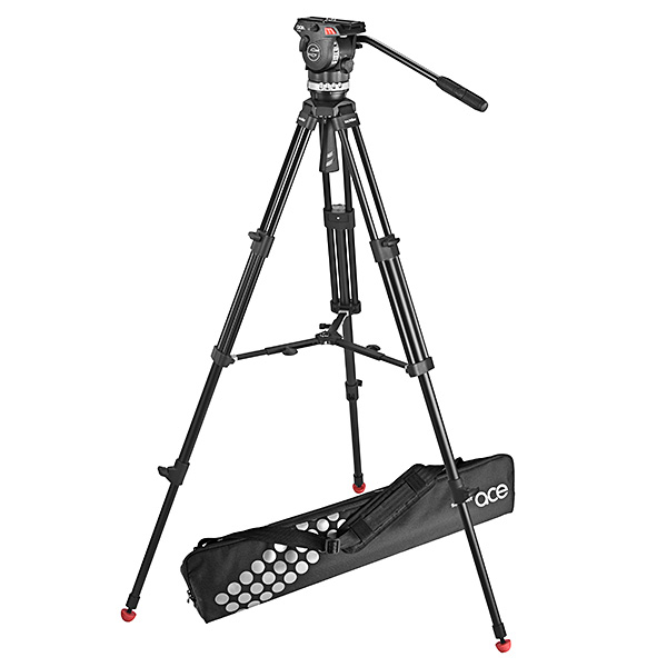 Sachtler System Ace M aluminij s fluidno glavo, stativom Ace 75/2 D, srednjim distančnikom in torbo.