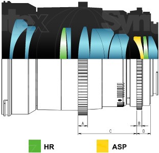 Ta 35-milimetrski objektiv zagotavlja 47,6° pokritost pri uporabi s fotoaparati micro four thirds. Hibridne asferične leče zagotavljajo ostro definirane slike z minimalnim popačenjem in kromatsko aberacijo, najmanjša razdalja ostrenja od objektiva pa je manj kot 12 palcev. Snemljiva petalinasta zaslonka objektiva zagotavlja zaščito pred bleščanjem pri fotografiranju brez matrice, sprednja stran objektiva z navojem pa omogoča pritrditev 77-milimetrskega filtrskega obroča.