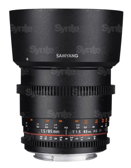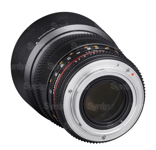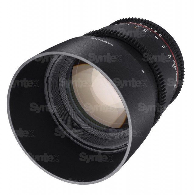 Lastnosti objektiva za kinematografski filmObjektiv Samyang 85 mm T1,5 VDSLR AS IF UMC II, ki je skrbno zasnovan za profesionalno delo s filmi in videom, ima obroč za ostrenje za sistem sledenja ostrenju. S snemljivim obročem za zaslonko lahko tiho in gladko spreminjate zaslonko. Na obeh straneh objektiva so zaradi priročnosti označene tudi lestvice razdalj in T-številke.