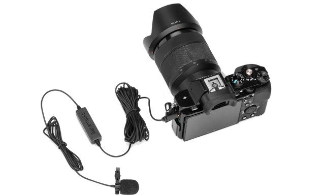 Stereo mikrofon za fotoaparate DSLR/DSLM, videokamere, mobilne telefone itd. z dobro občutljivostjo in razmerjem med signalom in šumom, 3,5 mm izhodom in 5 m dolgim kablom. Napajanje zagotavlja baterija CR1130. Priložena je penasta zaščita pred vetrom.