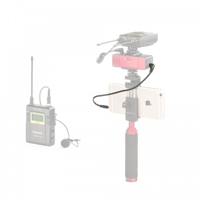 Kabel za povezavo izhodov Saramonic UwMic9, UwMic10, UwMic15, SR-PAX1, Vmic (itd. naprav z izhodom 3,5 mm) s telefoni in tabličnimi računalniki Android/iOS z vmesnikom za slušalke TRRS 3,5 mm.