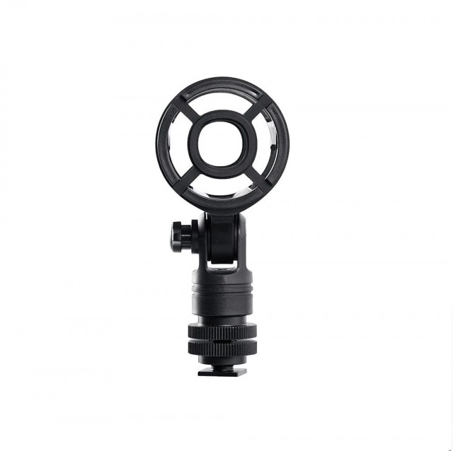 Oblazinjeno držalo za mikrofon je združljivo z vsemi mikrofoni s premerom od 19 do 25 mm. Z reduktorjem za vtičnico za bliskavico ter vijaki 1/4-20", 3/8" in 5/8" omogoča široko paleto možnosti pritrditve na fotoaparate/kamkorderje/vodila/stative.