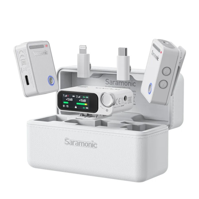 Sistem je idealen za poroke, intervjuje, podkaste, livestreaming in snemanje na poti, saj se njegov eleganten beli dizajn naravno ujema z oblačili in ohranja profesionalen videz. Sistem Saramonic Ultra White vključuje vso potrebno opremo za takojšnje brezžično snemanje zvoka visoke kakovosti.