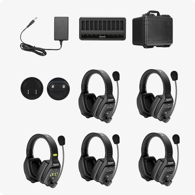 Saramonic WiTalk-WT5D je brezžični interkomski sistem s slušalkami za 5 oseb, ki deluje v polnem dupleksnem načinu in je opremljen z dvojno slušalko za profesionalne produkcijske ekipe. Idealno je za film, televizijo, oder, fotografiranje in šport, saj omogoča prostoročno komunikacijo in gibanje zaradi brezžične zasnove. Ponaša se z dosegom 400 m in podaljšano življenjsko dobo baterije, vse pa je shranjeno v robustnem, vodotesnem kovčku.