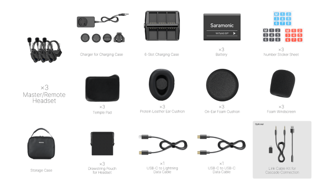 WiTalk9 SE 3S je najsodobnejši brezžični interkomski sistem, prilagojen profesionalnim ekipam, ki potrebujejo nemoteno komunikacijo brez uporabe rok v dinamičnih okoljih, kot so snemanje filmov, dogodki v živo, oddajanje in produkcija na odru. Ta sistem za 5 oseb uporablja tehnologijo ClearTalk™ podjetja Saramonic, ki združuje tri mikrofone in sofisticirane algoritme za odpravljanje hrupa, da zagotovi kristalno čisto 360° zajemanje zvoka in zavračanje okoljskega hrupa.
