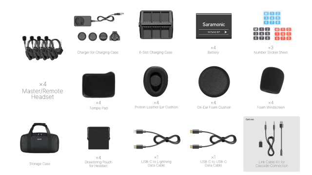 WiTalk9 SE 4S je vrhunski brezžični interkomski sistem, prilagojen profesionalnim ekipam, ki potrebujejo nemoteno komunikacijo brez uporabe rok v dinamičnih okoljih, kot so snemanje filmov, prireditve v živo, oddajanje in produkcija na odru. Ta sistem za 5 oseb uporablja tehnologijo ClearTalk™ podjetja Saramonic, ki združuje tri mikrofone in sofisticirane algoritme za odpravljanje hrupa, da zagotovi kristalno čisto 360° zajemanje zvoka in zavračanje okoljskega hrupa.