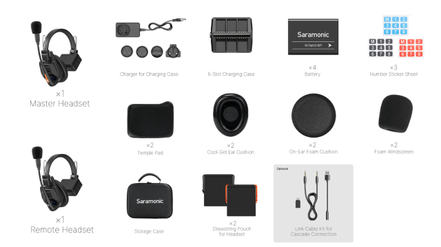 Saramonic WiTalk9 WT2S je brezžični interkomski sistem za 9 oseb brez vozlišča, zasnovan za nemoteno komunikacijo v ekipi. Ta komplet vključuje eno glavno in štiri oddaljene slušalke, ki omogočajo prostoročno delovanje in doseg do 500 m. Z tehnologijo ClearTalk™ za odpravljanje hrupa in tehnologijo DECT zagotavlja kristalno čisto, varno in zanesljivo komunikacijo tudi v hrupnem okolju.