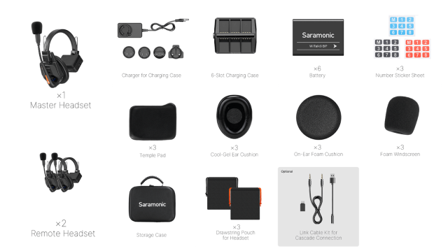 Saramonic WiTalk9 WT3S je brezžični interkomski sistem za 9 oseb brez vozlišča, zasnovan za nemoteno komunikacijo v ekipi. Ta komplet vključuje eno glavno in štiri oddaljene slušalke, ki omogočajo prostoročno upravljanje in doseg do 500 m. Z tehnologijo ClearTalk™ za odpravljanje hrupa in tehnologijo DECT zagotavlja kristalno čisto, varno in zanesljivo komunikacijo tudi v hrupnem okolju.