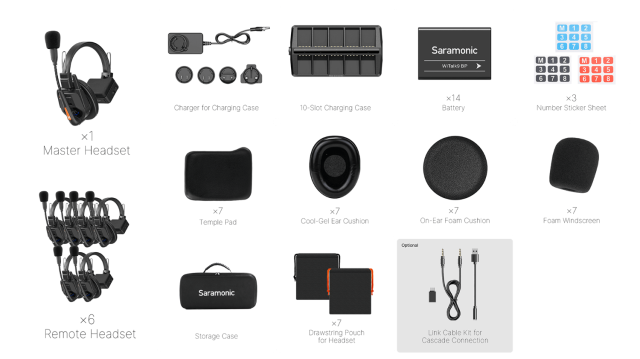 Saramonic WiTalk9 WT7S je brezžični interkomski sistem za 9 oseb brez vozlišča, zasnovan za nemoteno komunikacijo v ekipi. Ta komplet vključuje eno glavno in štiri oddaljene slušalke, ki omogočajo prostoročno delovanje in doseg do 500 m. Z tehnologijo ClearTalk™ za odpravljanje hrupa in tehnologijo DECT zagotavlja kristalno čisto, varno in zanesljivo komunikacijo tudi v hrupnem okolju.