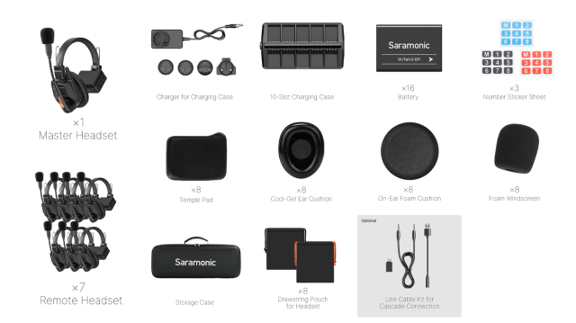 Saramonic WiTalk9 WT8S je brezžični interkomski sistem za 9 oseb brez vozlišča, zasnovan za nemoteno komunikacijo v ekipi. Ta komplet vključuje eno glavno in štiri oddaljene slušalke, ki omogočajo prostoročno delovanje in doseg do 500 m. Z tehnologijo ClearTalk™ za odpravljanje hrupa in tehnologijo DECT zagotavlja kristalno čisto, varno in zanesljivo komunikacijo tudi v hrupnem okolju.