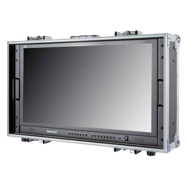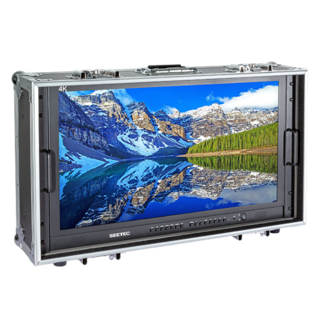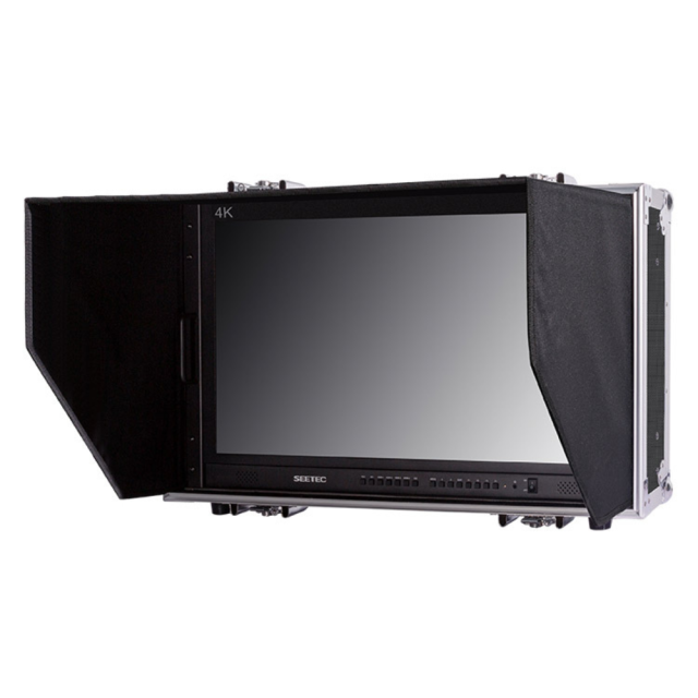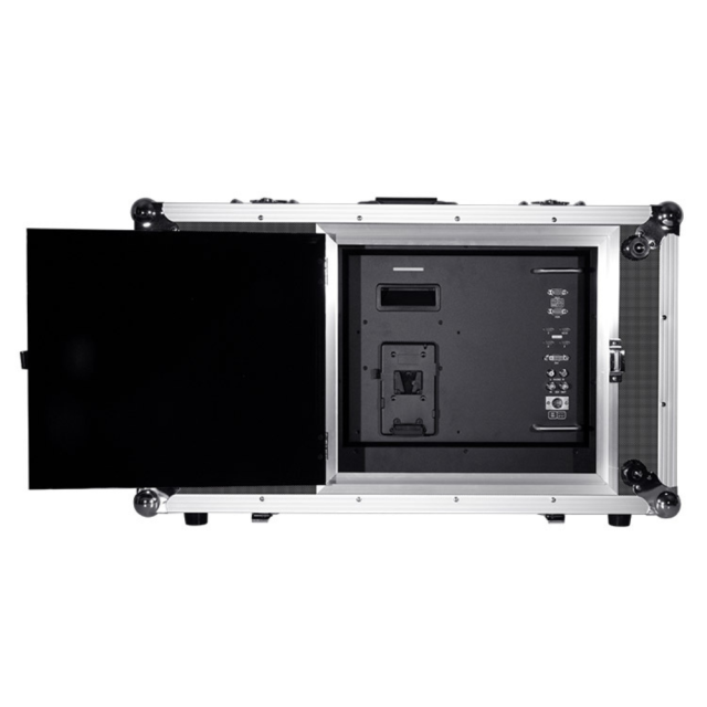 prenosni 28-palčni monitor 4K v kovčku (vključno z zložljivim senčnikom), posebej zasnovan za produkcijo v živo zunaj studia.