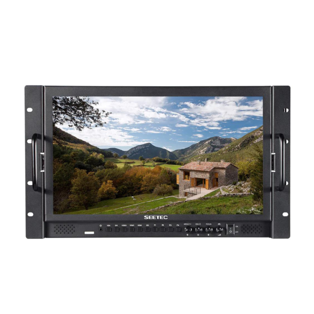 17,3-palčni oddajniški monitor 4K SEETEC za montažo v omaro ima zaslon z ločljivostjo 1920 x 1080 in podpira signale do ločljivosti UHD 4K30. Ima vhode in izhode HDMI, 3G-SDI ter analogne vhode in izhode, zvočne vhode RCA in vrata za ocenjevanje. Ti priključki so na voljo na zadnji plošči skupaj z vgrajeno ploščo za namestitev baterije v obliki črke V in 4-pinskimi vhodi XLR ter sodčkastim napajalnikom. Na sprednji strani so priključek za slušalke, vgrajeni zvočniki, tribarvni indikator LED ter gumbi za upravljanje in funkcije. Ta različica za montažo v stojalo ima na sprednji strani vgrajene nosilce za montažo v stojalo. Funkcije analize slike monitorja vključujejo ostrenje, povečavo in pomoč za posamezno slikovno piko ter jih je mogoče dodeliti štirim funkcijskim gumbom na sprednji plošči.