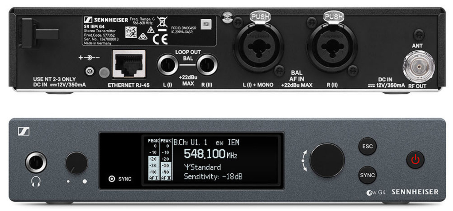 Komplet vključuje polovični stereo SR IEM G4 oddajnik v robustni kovinski ohišju z OLED zaslonom za intuitivno upravljanje. Brezžična sinhronizacija med oddajnikom in sprejemniki je enostavna prek infrardečega signala, združljivost s programsko opremo Sennheiser WSM pa omogoča prilagodljivo dodeljevanje frekvenc. Z do 16 združljivimi kanali, pasovno širino 42 MHz in 1680 izbirnimi frekvencami EW IEM G4-A1 omogoča delovanje brez motenj v prometnih RF-okoljih.