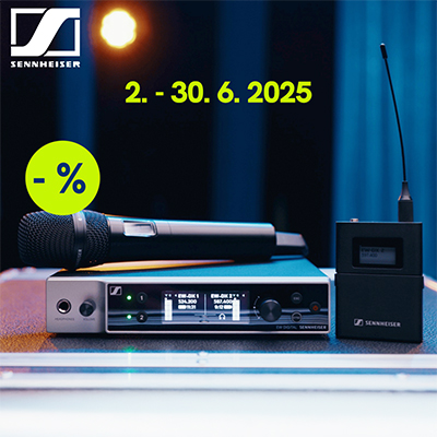 Izkoristite junijsko promocijo znamke Sennheiser! Popust na brezžične sete ew Digital, vokalne mikrofone in mikrofonne glave 435/445. Velja do 30. 6. 2025.