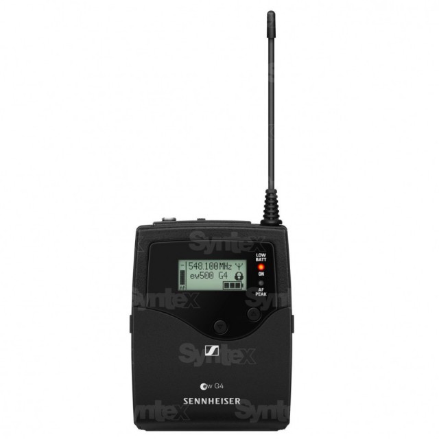 Zmogljiv brezžični oddajnik za nošenje serije G4 500P z večjo pasovno širino in močjo oddajanja. Serija EW 500 G4 ponuja tudi večjo moč radijskih valov (s preklopom v območju 10/30/50 mW) in do 8 ur delovanja baterije. Paket vsebuje nosljivi oddajnik SK 500 G4 in 2 bateriji AA.