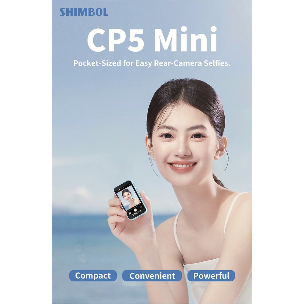 Shimbol CP5 Mini White omogoča enostavno snemanje selfijev z zadnjo kamero vašega telefona. 2,2-palčni LCD-zaslon z ločljivostjo 480 × 800 zagotavlja jasno sliko, povečava z enim klikom pa zagotavlja ustrezno kadriranje brez črnih pasov. Brezžično upravljanje zaklopa omogoča snemanje slik na daljavo, sinhronizacija z enim dotikom pa se takoj poveže z vašim telefonom.