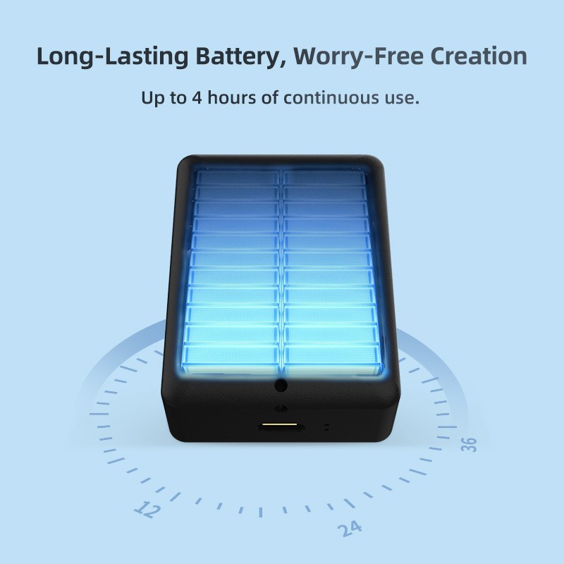 Bluetooth nadzor zaklopa omogoča daljinsko upravljanje iPhona do 30 metrov, baterija 1200 mAh pa zagotavlja 4 ure neprekinjene uporabe. Magnetno pritrditev omogoča enostavno pritrditev na stative, nosilce ali druge ustvarjalne naprave. Nizka zakasnitev 60 ms zagotavlja nemoteno spremljanje videa.