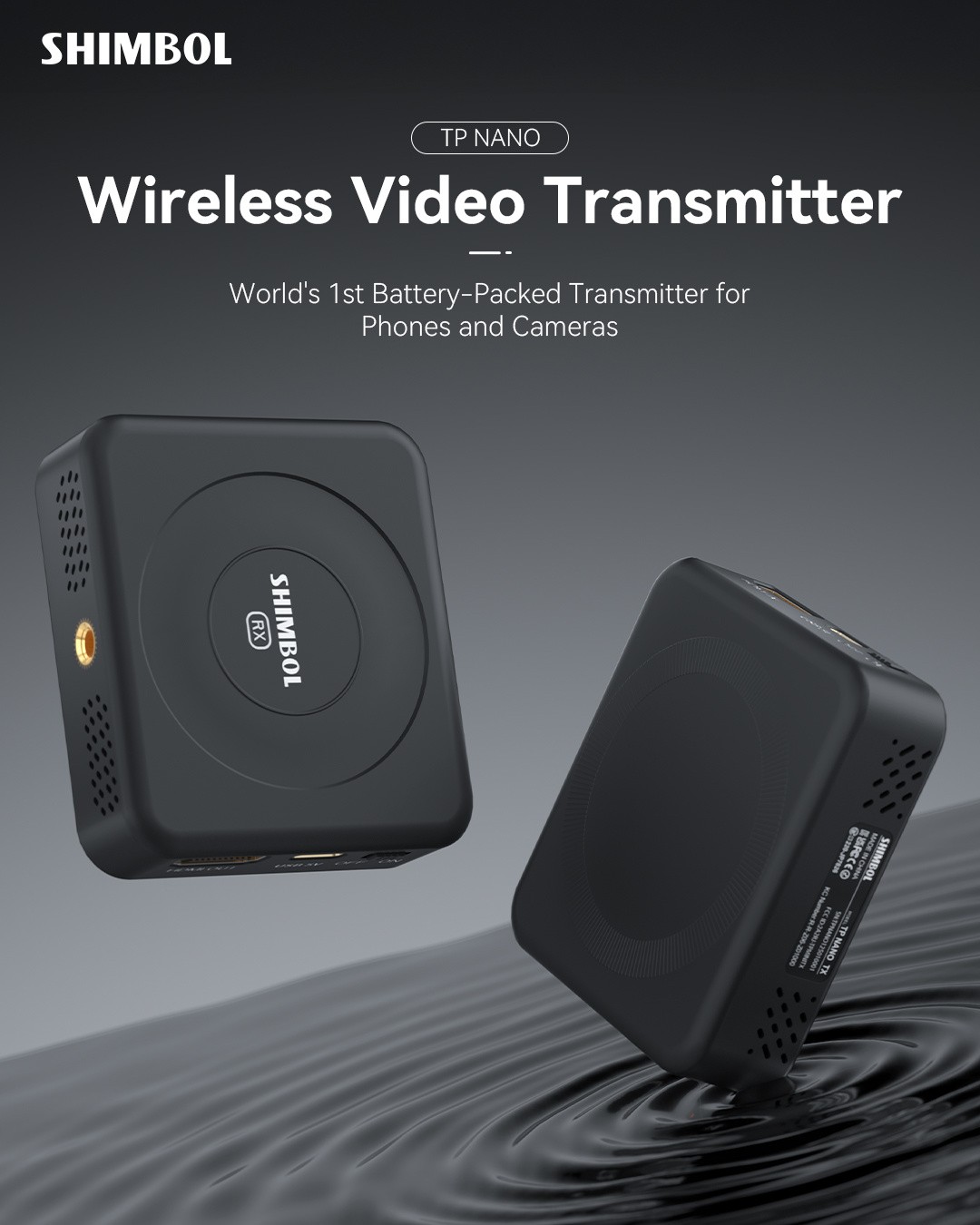 Shimbol TP Nano – prvi brezžični video oddajnik na svetu, ki deluje na baterije: Ultrakompaktna vgrajena baterija s kapaciteto 2000 mAh za več kot 4 ure brezžičnega delovanja, domet 150 m z izjemno nizko zakasnitvijo 60 ms, prenos FHD 1080p60, MagSafe-ready snap-on za telefone, HDMI/USB-C vhodi, samodejno preklapljanje frekvenc – idealno za mobilne ustvarjalce, gimbale, drone in snemanje na poti.