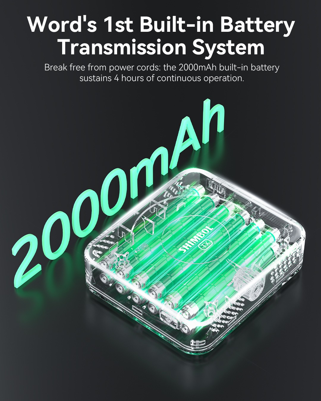 Z Shimbol TP Nano se za vedno osvobodite napajalnih kablov – to je prvi resnično baterijsko napajan sistem za brezžični prenos videa na svetu, zasnovan za telefone, brezzrcalne kamere in akcijske nastavitve. Opremljen je z vgrajeno baterijo zmogljivosti 2000 mAh, ki omogoča ≥4 ure neprekinjenega prenosa FHD 1080p60 s kinematografsko jasnostjo in izjemno nizko zakasnitvijo 60 ms, celo na razdalji 150 m. Prilagodljivo samodejno preklapljanje frekvenc zagotavlja trdno, neprekinjeno povezavo v prenatrpanih RF okoljih.