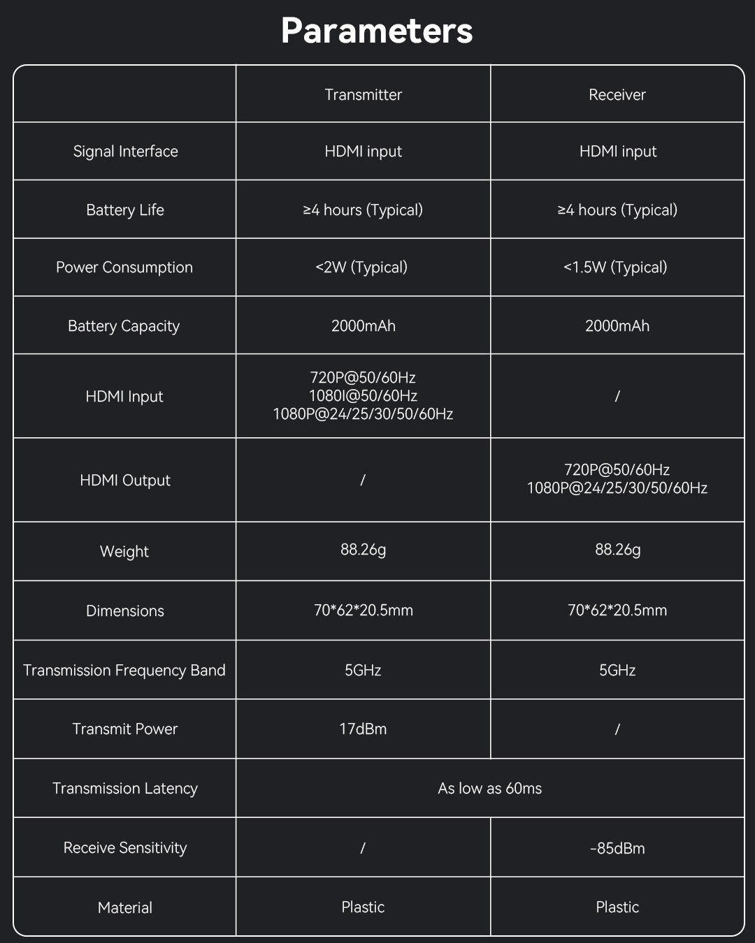 | Input wireless video | HDMI |