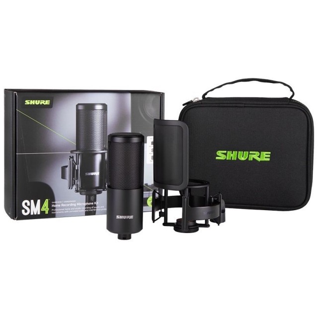 Shure SM4, Home Recording Microphone, magn. pop filter, shock mount, mic adapt, zipp. carrying case
