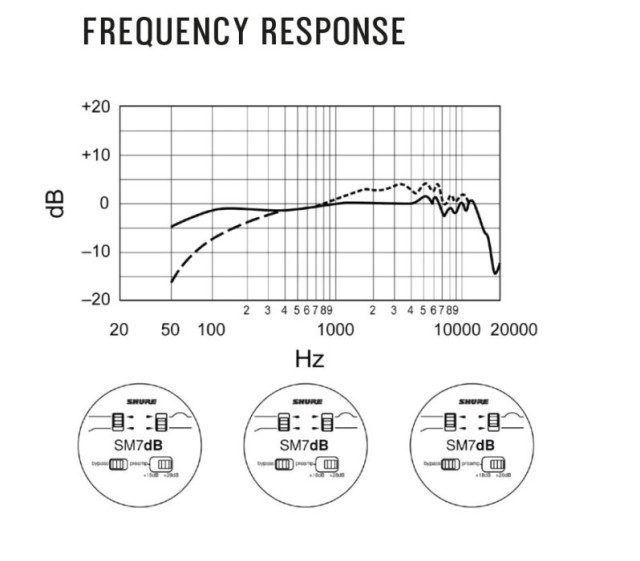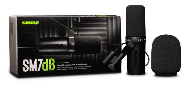 SM7dB je dinamični vokalni mikrofon podjetja Shure.Vgrajeni predojačevalnik zagotavlja do +28 dB transparentnega ojačenja. Mikrofon ima naraven topel in gladek zvok, ki je še posebej uporaben pri snemanju vokalov in govorjene besede. Jasno in dosledno reprodukcijo zvoka zagotavljata vetrovni pokrov in notranji nosilec za udarce. Odlična zaščita pred elektromagnetnim šumom, optimizirana za zaščito pred širokopasovnimi motnjami, ki jih oddajajo računalniški monitorji, pripomore k odlični kakovosti zvoka.