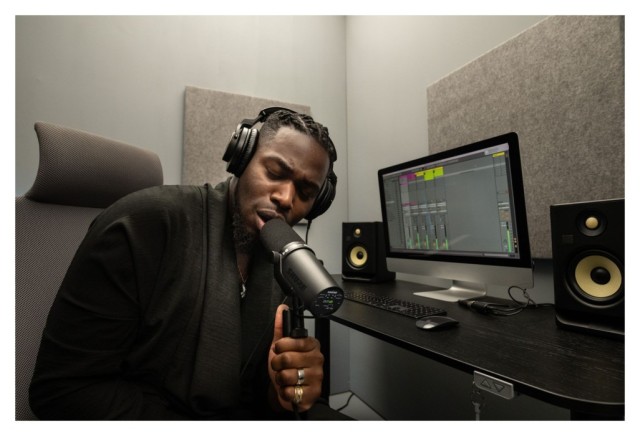 Dinamični vokalni mikrofon z vgrajenim predojačevalnikom, kardioidni polarni vzorec, frekvenčno območje: 50 Hz - 20 kHz, zaščita pred vetrom in priložen 3/8" navojni adapter