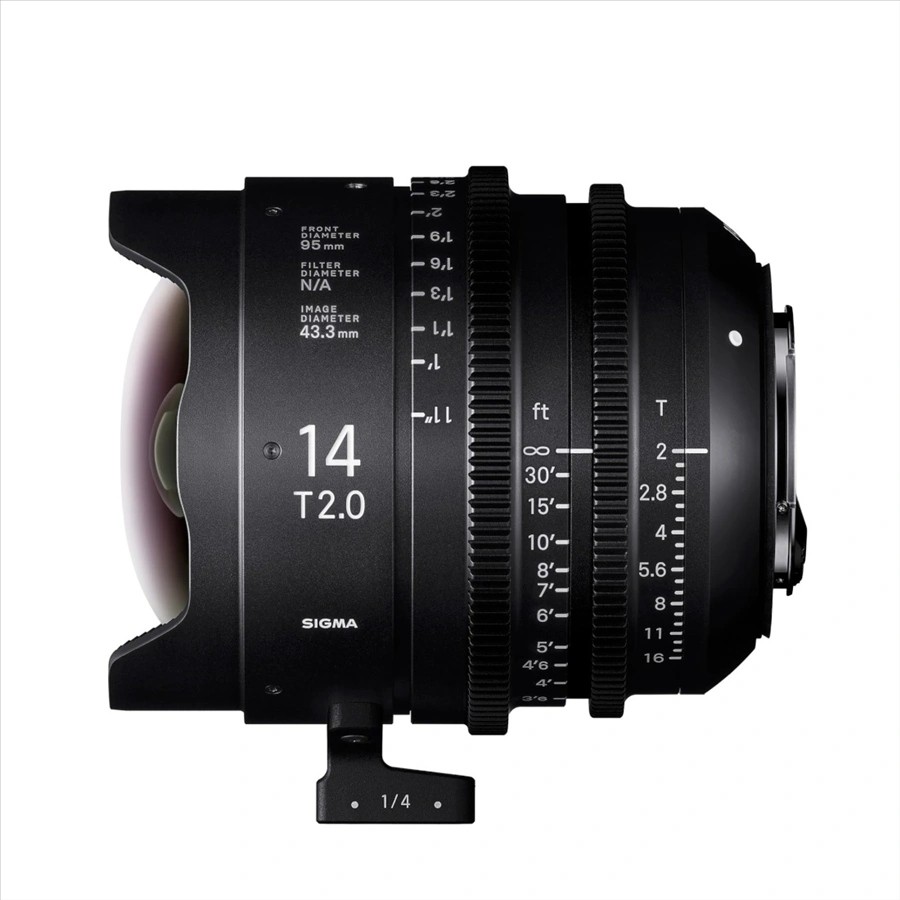 Objektiv SIGMA CINE 14 mm T2 FF Cine (priključek Canon EF) je del SIGMINE ponudbe visokozmogljivih polnoformatnih filmskih objektivov, zasnovanih za profesionalne filmarje, ki zahtevajo izjemno optično kakovost in natančno mehansko upravljanje. S svojo ultraširoko goriščno razdaljo 14 mm in konstantno zaslonko T2 je ta objektiv idealen za snemanje filmskih pokrajin, arhitekture, posnetkov za vizualne učinke (VFX) ter za privlačno pripovedovanje zgodb s širokokotnim objektivom.