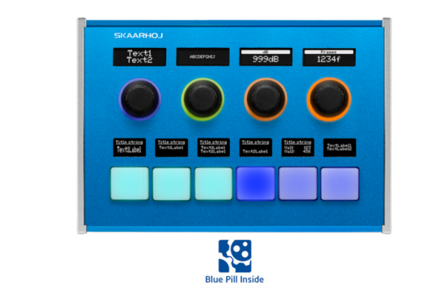 SKAARHOJ Inline 10 z Blue Pill Inside je kompaktna modularna nadzorna plošča za oddajanje, opremljena s programirljivimi štirismernimi RGB-gumbi, natančnimi kodirniki in OLED-zasloni, zasnovana za prilagodljivo dodeljevanje vodil in prilagodljive delovne tokove pri produkciji v živo.